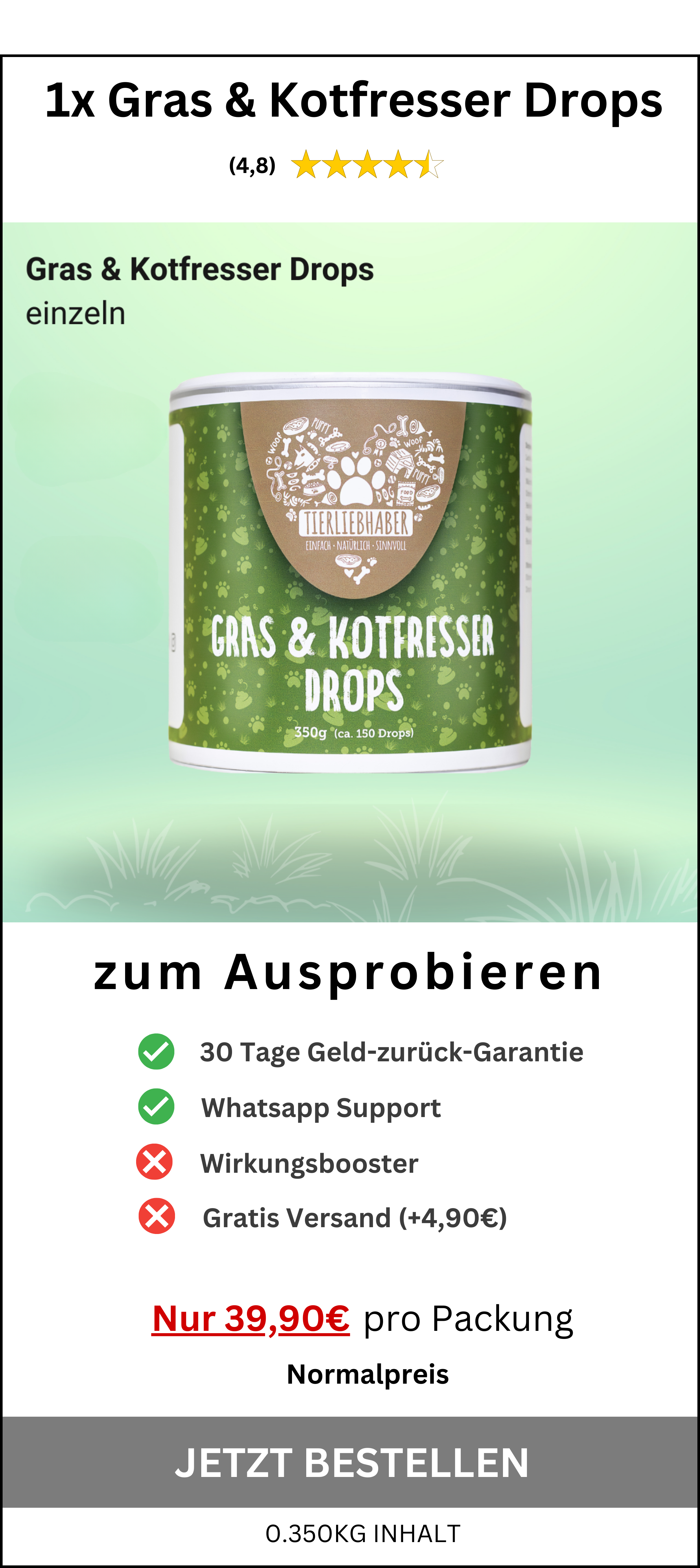 Sanfte Sodbrennen Kur für Hunde – Die Gras & Kotfresser Drops mit natürlicher Anti-Sodbrennen-Formel gegen Übersäuerung